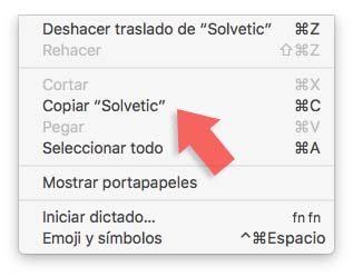 De esta manera copiamos y pegamos usando el menú en macOS Sierra.