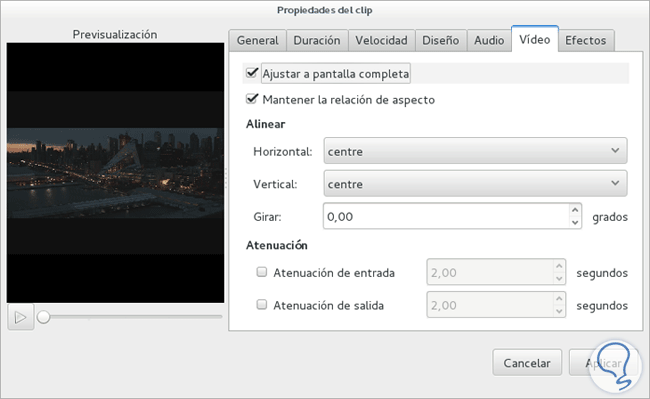Nos brinda la posibilidad de atenuar el video al inicio, fin o intermedio del mismo con diversos efectos