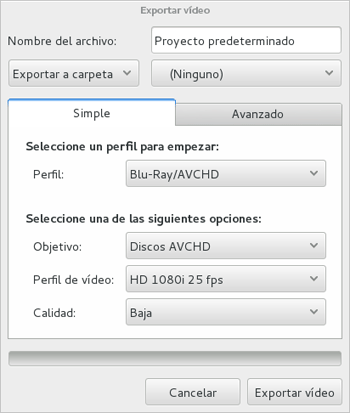 En la ventana desplegada podemos pulsar sobre el campo Perfil y se desplegarán varias opciones de calidad como: