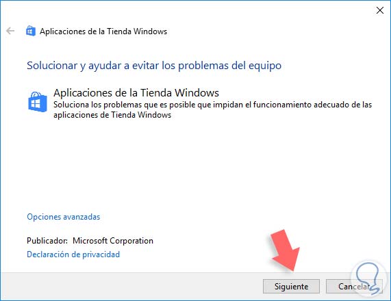 Esta es quizás una de las formas más sencillas como podemos corregir y superar cualquier inconveniente con la aplicación ya que de manera automática Windows realiza un análisis e intenta corregir aquellas fallos que sean visibles. Para abrir el solucionador de problemas en Windows 10 podemos usar alguna de las siguientes opciones: