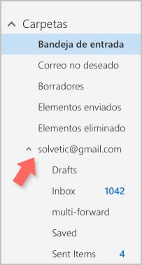 Una vez realizado esto, nuestras cuentas habrán quedado conectadas y ya podremos ver en el menú principal de Outlook la carpeta de acceso a nuestra cuenta añadida. ( Puede tardar un tiempo esta actualización)