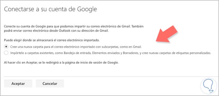 Una vez realizado el paso anterior, debemos seleccionar donde queremos que se almacene el correo importado. Podemos elegir entre crear una nueva carpeta, o bien importarlo a carpetas ya existentes.