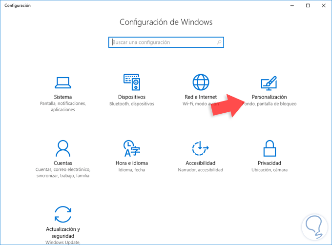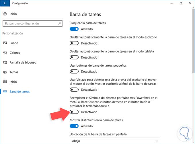 Seleccionaremos la opción Personalización y en la ventana desplegada nos dirigimos a la opción Barra de Tareas.