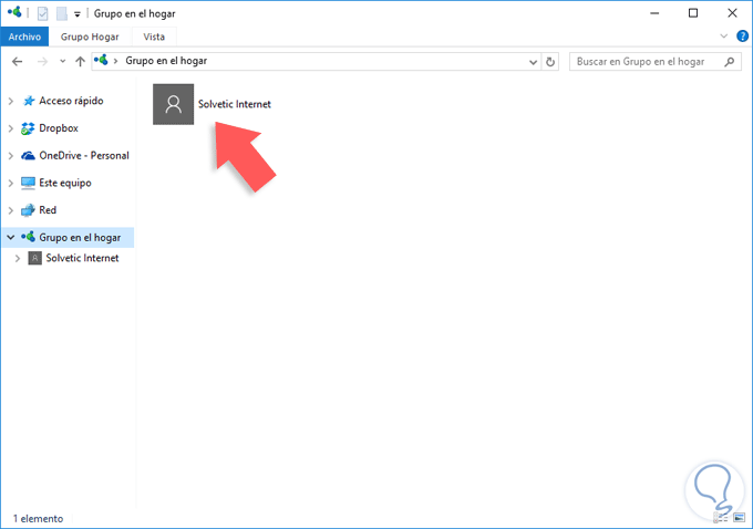 Si vamos al explorador de archivos veremos el respectivo acceso al Grupo Hogar.