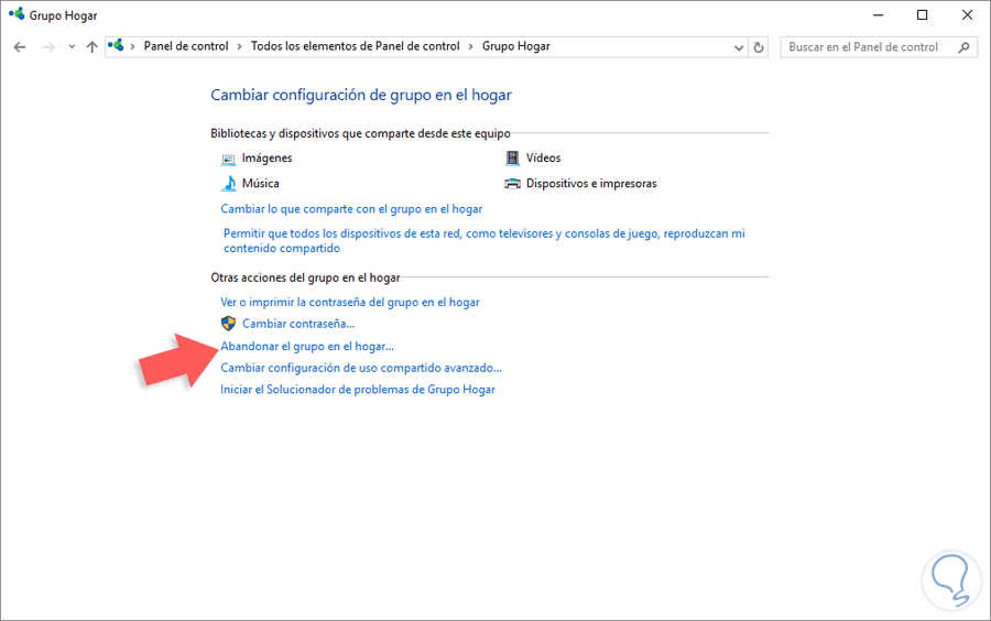 Si estamos seguros de abandonar el Grupo Hogar seleccionamos la opción Abandonar grupo en el hogar para completar el proceso.