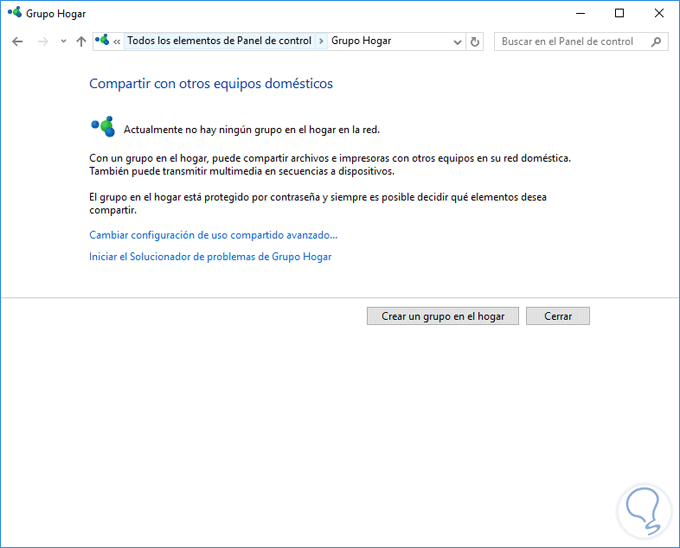 Tutorial con los pasos para saber crear, configurar, salir o eliminar Grupo de Hogar para los sistemas Windows 10, 8, 7.