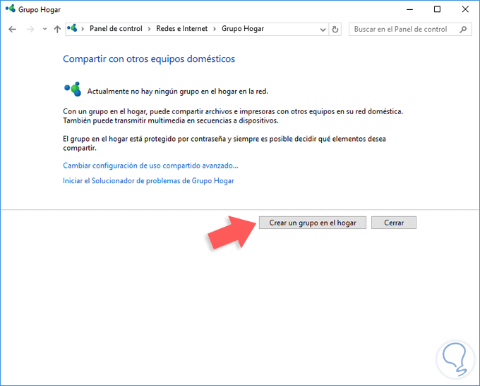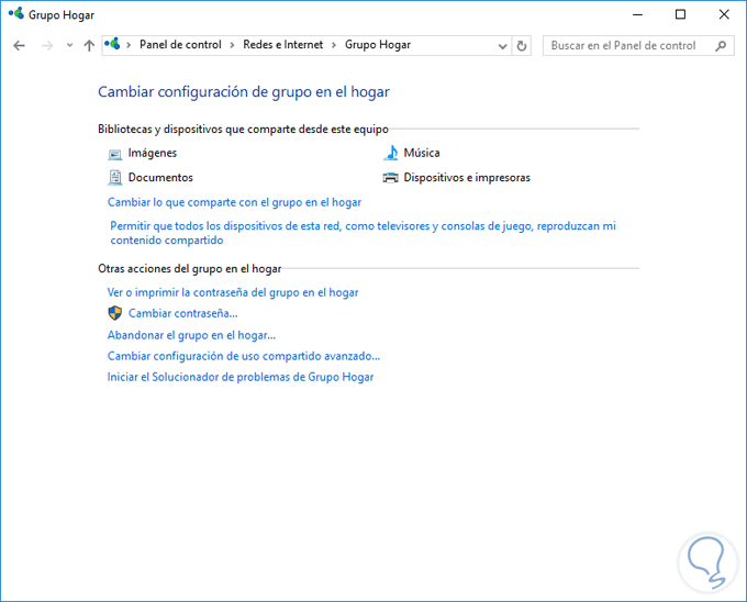 • Ir a la ruta Panel de control / Redes e Internet / Grupo Hogar.
