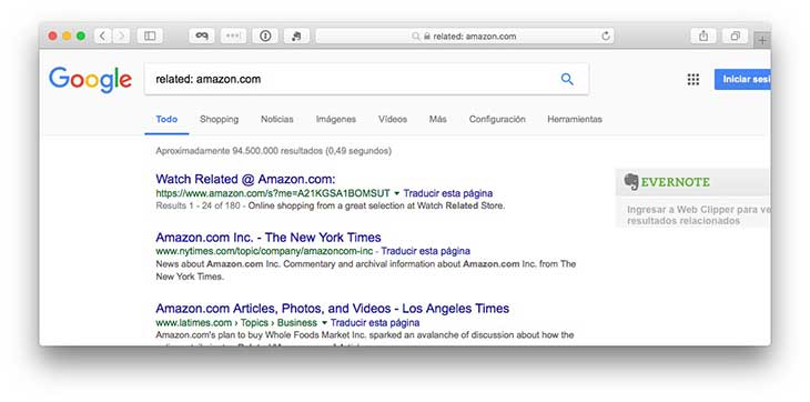 related:amazon.comAl realizar esta consulta obtendríamos sitios relacionados con el portal de compras Amazon: