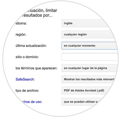 - En el campo Idioma indicaremos que filtre resultados solamente en español