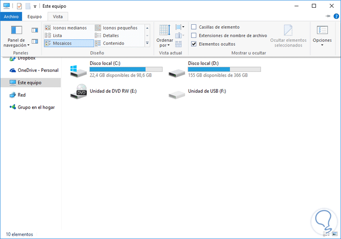 En primer lugar cerramos las notas que tengamos abiertas en el momento. A continuación accedemos al explorador de archivos y vamos a la pestaña Vista y activamos la casilla, en caso de que no lo este, Elementos ocultos.