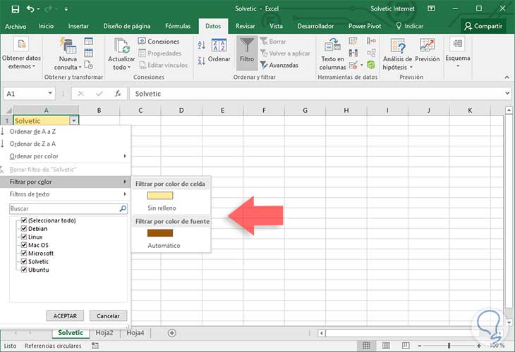 • Ordenar por color (En caso que alguna celda tenga un color diferente al estándar)