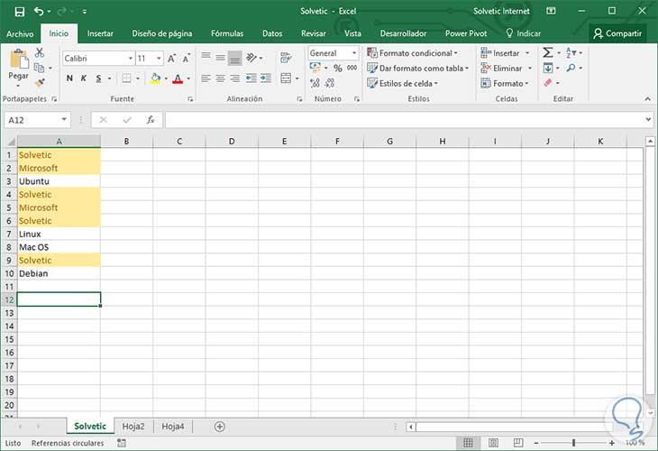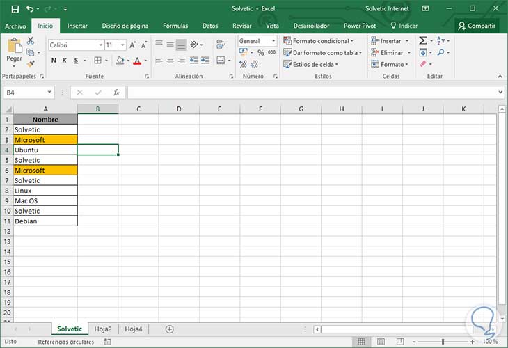 Como vemos Microsoft se repite 2 veces en toda la columna por lo cual es el resultado resaltado.