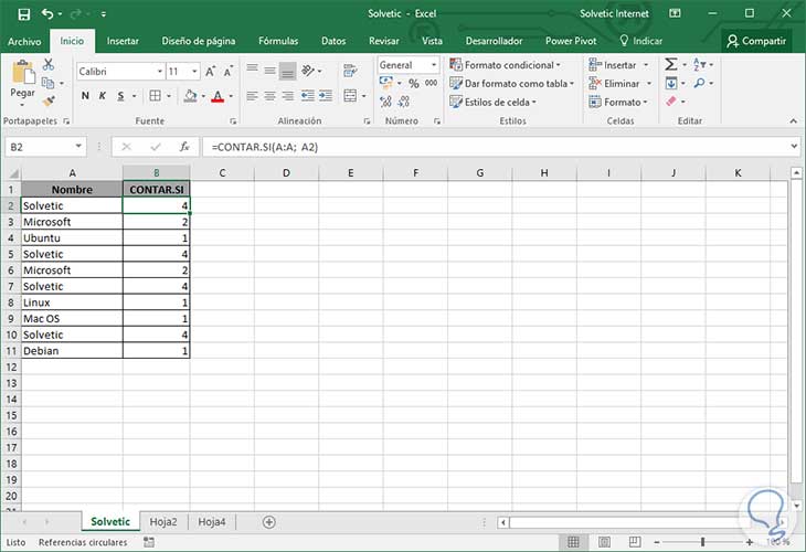 Otra de las formas posibles que nos ofrece Excel 2016 es ver los datos que se repiten una cantidad determinada de veces, para ello realizaremos el siguiente proceso: