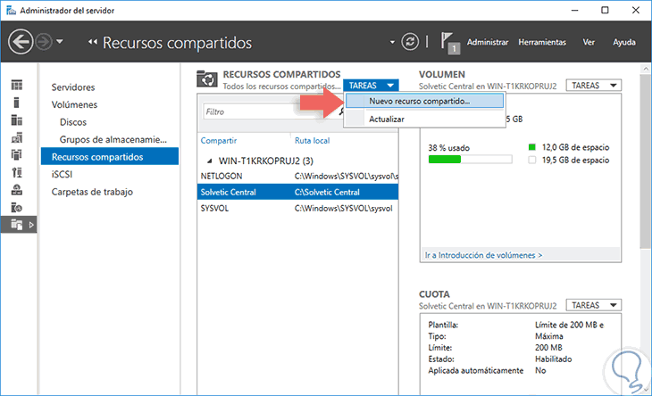 6. Compartir una carpeta con Administrador del servidor en Windows Server 2016