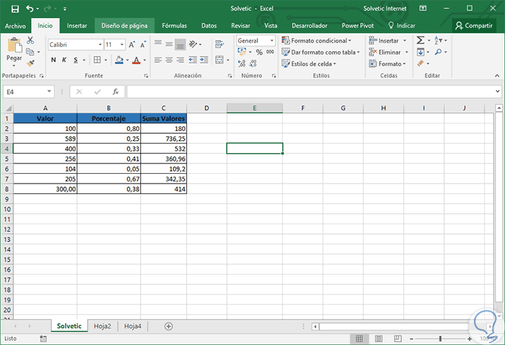 2. Sumar porcentajes en Excel 2016