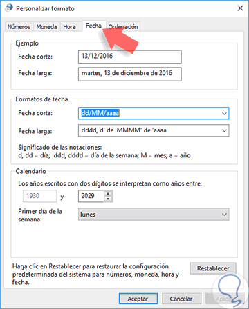 Así, si ingresamos el valor 29 en una fecha, Windows asumirá que es el año 2029 y si ingresamos el valor 30 se asumirá que es 1930. Para editar este valor en Windows, en este caso Windows 10, vamos a la siguiente ruta: