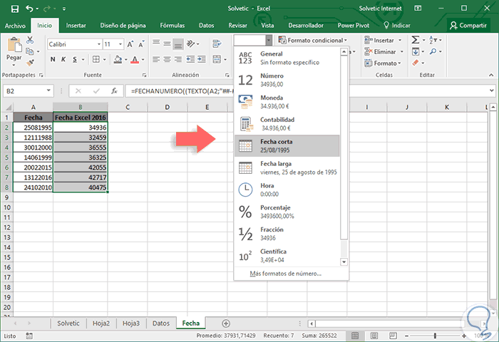 Ahora simplemente debemos cambiar estos valores a fecha desde el grupo Numero.