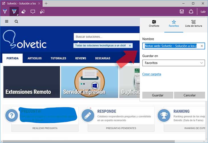 Podemos guardarlos en OneNote, carpetas personales o dejarlo solo de lectura. Con estas grandes características ofrecidas por Microsoft Edge tenemos una gran herramienta para resaltar los textos o partes deseadas de cualquier página web de una manera profesional y sencilla lo cual va a convertir a Edge en un poderoso navegador con opciones más allá de una simple consulta.