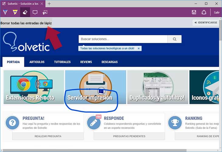 Al momento de seleccionar la opción Borrar todas las entradas de lápiz se borrarán todas las acciones que hayamos procesado con el lápiz.