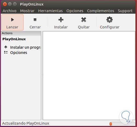 Una vez pulsemos sobre la aplicación PlayOnLinux veremos lo siguiente: