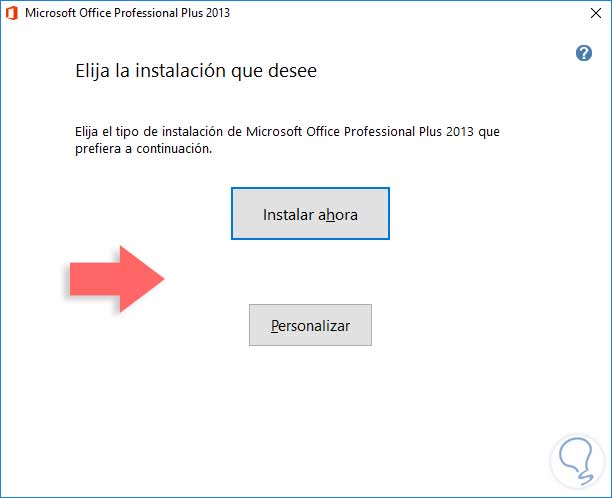 Allí pulsamos en la opción Instalar si deseamos instalar todos los componentes de Office 2013 o pulsamos en Personalizar si deseamos instalar solo algunos programas. Veremos que inicia el proceso de instalación de Office 2013: