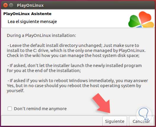 Pulsamos en Siguiente para que inicie el proceso de configuración con PlayOnLinux.