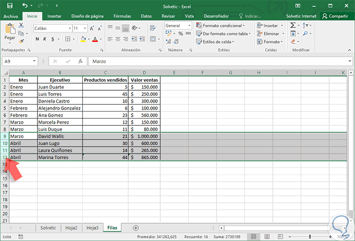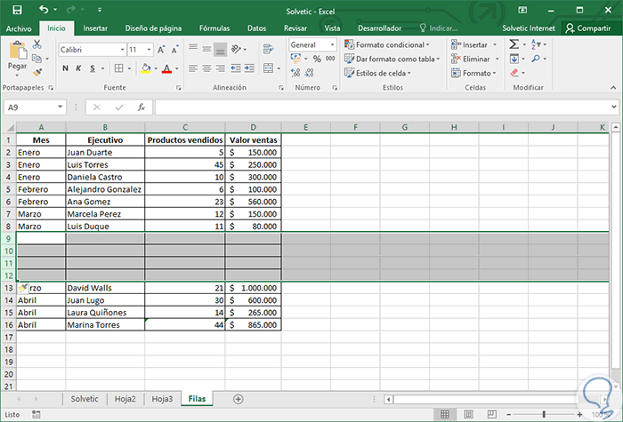 Las formas más comunes para insertar filas en Excel 2016 son las siguientes: