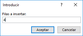 Una vez ejecutemos la macro se desplegará la siguiente ventana donde indicaremos la cantidad de filas a añadir: