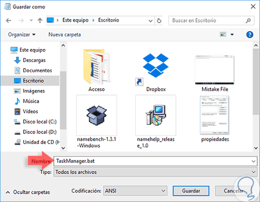 4. Deshabilitar o habilitar Administrador de tareas Windows 10, 7 regedit desde archivo bat