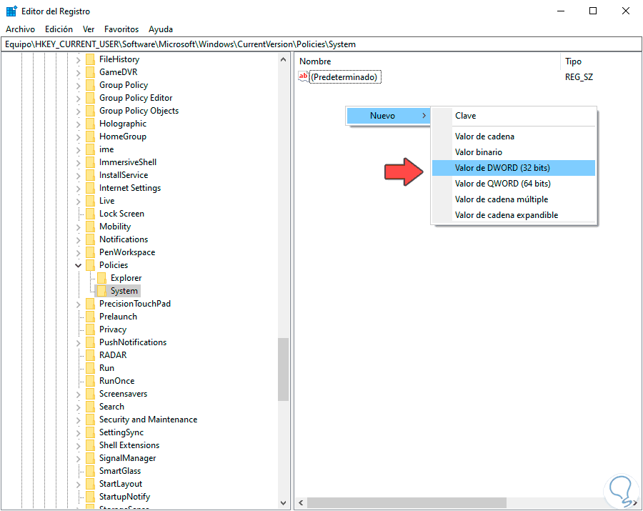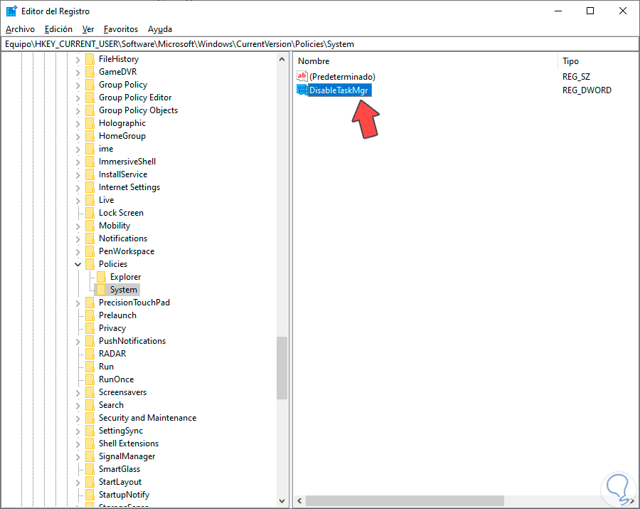 5. Deshabilitar o habilitar Administrador de tareas Windows 10 regedit desde Editor de Registro
