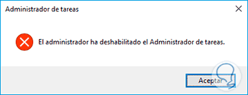 Cuando nos encontramos que el administrador ha deshabilitado el Administrador de tareas veremos esto: