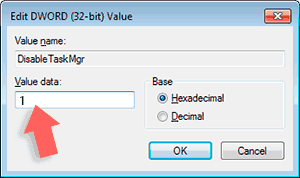 6. Deshabilitar o habilitar Administrador de tareas Windows 7 regedit desde Editor de Registro