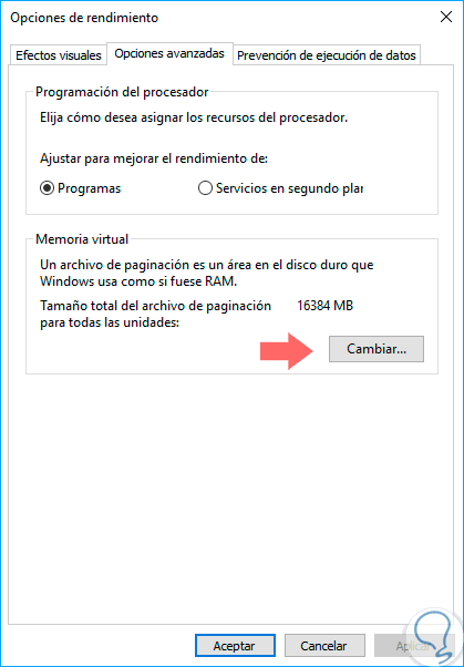 8. Ajustar el tamaño del archivo de paginación Windows 10