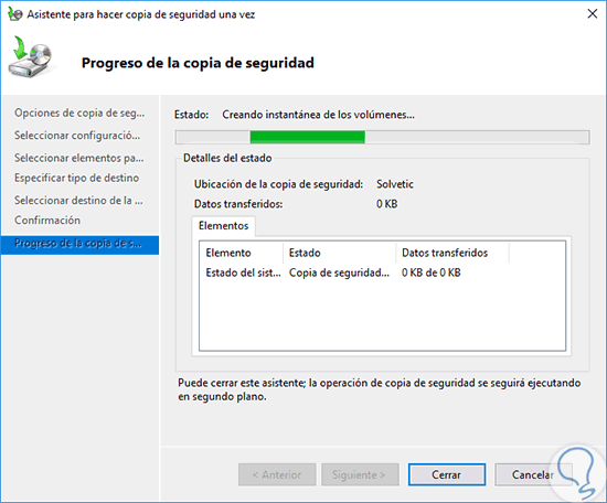 De esta manera hemos iniciado el proceso de respaldo de nuestro Directorio Activo en Windows Server 2016.