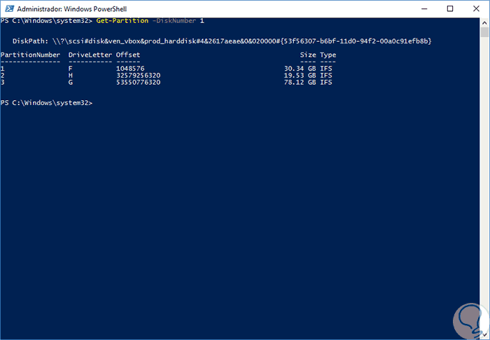Get-Partition -DiskNumber (Numero de disco)