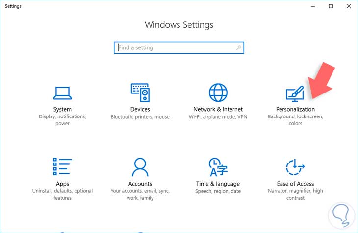 En la nueva organización del panel de control seleccionamos la opción Personalización