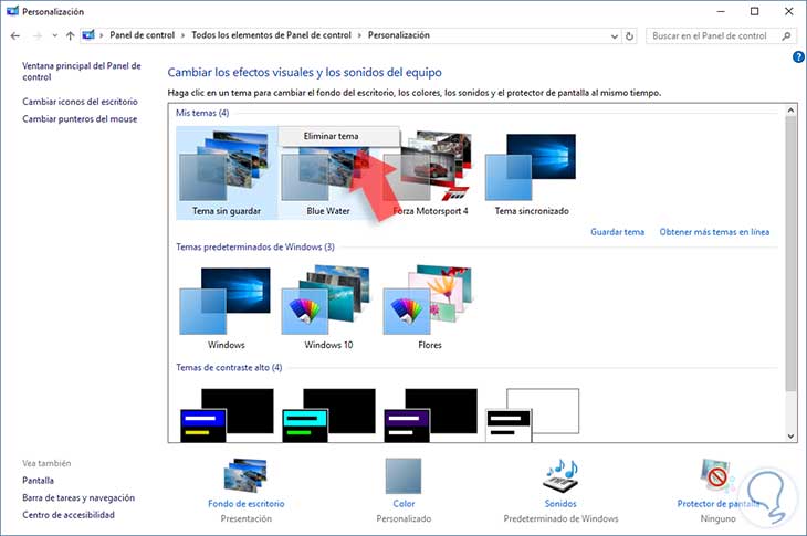 Es importante recordar que no podemos eliminar el tema que está siendo usado actualmente. Hemos visto cómo podemos personalizar de una forma completa nuestro sistema gracias a los temas ofrecidos por Microsoft.