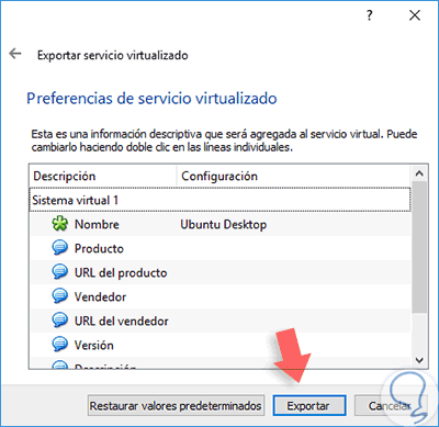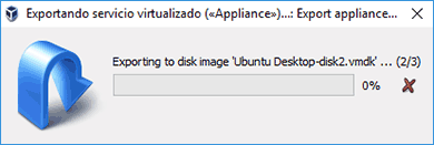 Una vez validada esta información pulsamos en el botón Exportar y veremos que inicia el proceso de exportación de la máquina virtual.