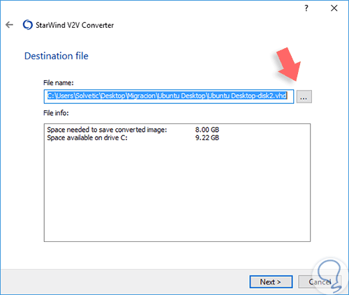 A continuación, veremos la siguiente ventana donde debemos definir donde se ha de almacenar la imagen convertida.