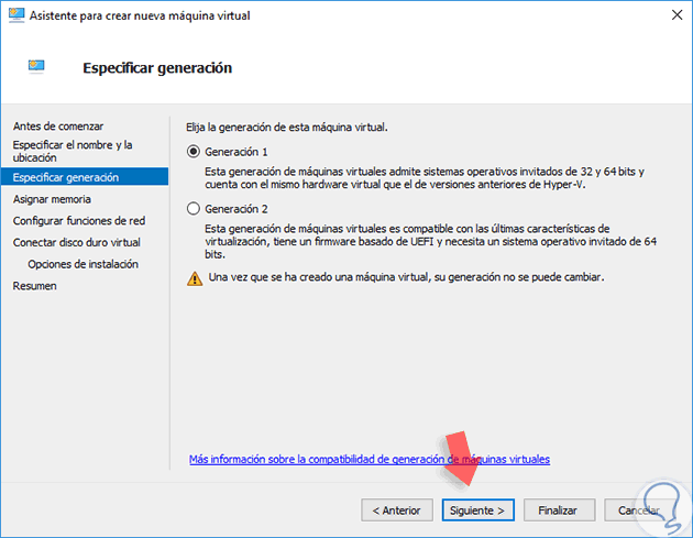 Al pulsar Siguiente debemos definir la generación de la máquina virtual.
