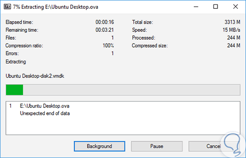Una vez la máquina virtual haya sido exportada recomendamos descomprimir el contenido de la misma con alguna utilidad gratuita como 7Zip o WinRar.