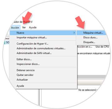 Para esto abrimos el administrador de Hyper-V y vamos al menú Acción / Nuevo / Máquina virtual.