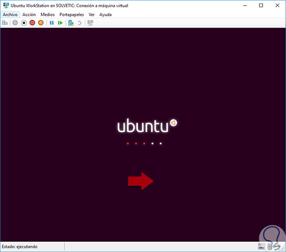Allí vamos al menú Acción / Conectar y veremos que se ha iniciado de forma correcta nuestra máquina virtual exportada.
