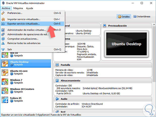 1. Cómo exportar máquina virtual desde VirtualBox
