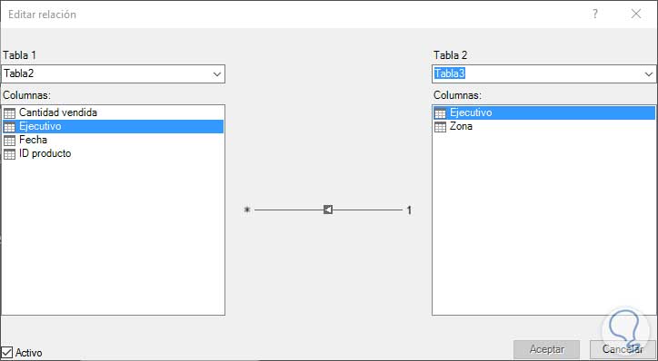 Se desplegará la siguiente ventana donde podremos ver las tablas que actúan en la relación creada: