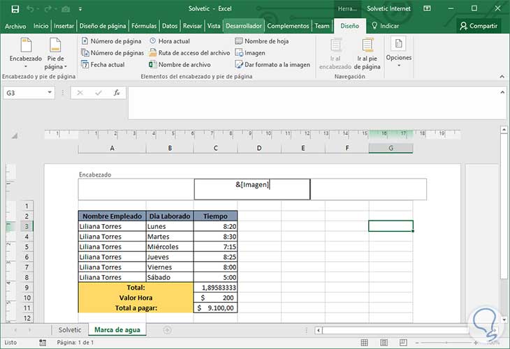 Ahora analizaremos como podemos crear una marca de agua en Excel 2016, aunque esto no es muy común ya que el mayor trabajo de Excel se realiza directamente en el equipo y no se requiere imprimir; pero en algunas oportunidades será necesario imprimir hojas de Excel 2016 por lo cual la marca de agua es una gran aliada en cuanto a protección de derechos se refiere.