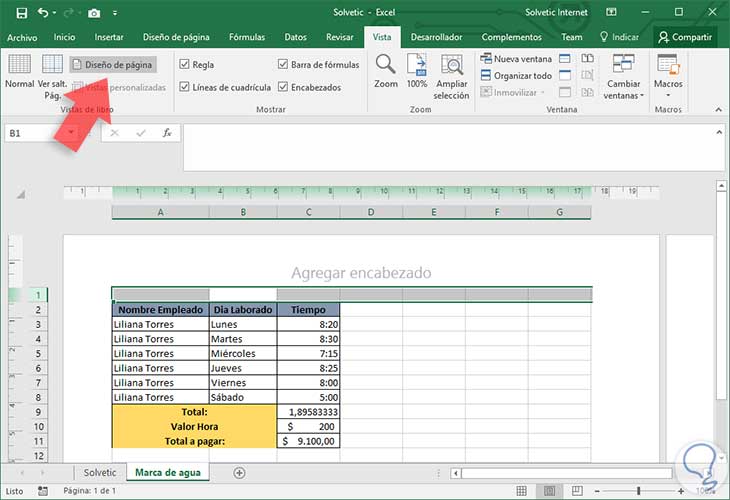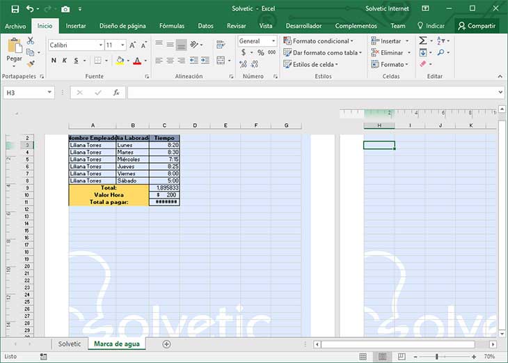 4. Cómo poner marca de agua a una sección en Excel 2016