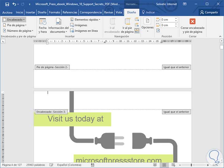 Veremos el cambio reflejado. Una vez definida esta sección daremos doble clic sobre el encabezado de la página y veremos lo siguiente: