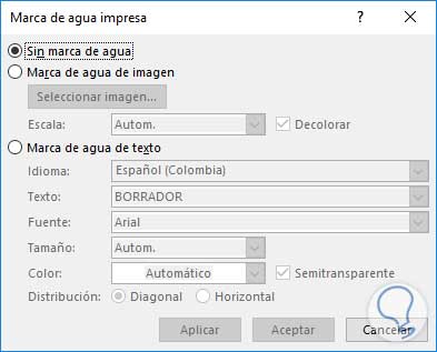 De esta forma podemos establecer diversos tipos de marcas de agua en Word 2016 y Excel 2016 para crear un documento personalizado.