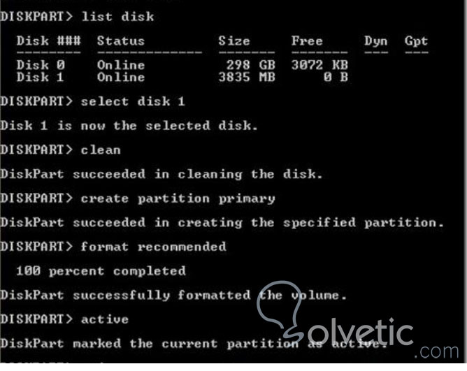 · Diskpart: Con esto inicializamos la utilidad de partición de discos.
